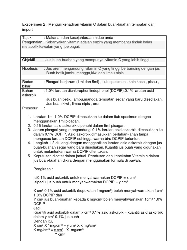 2 Jus Buah Yang Berlainan Akan Mengandungi Peratus Vitamin C Yang Berlainan Course Hero