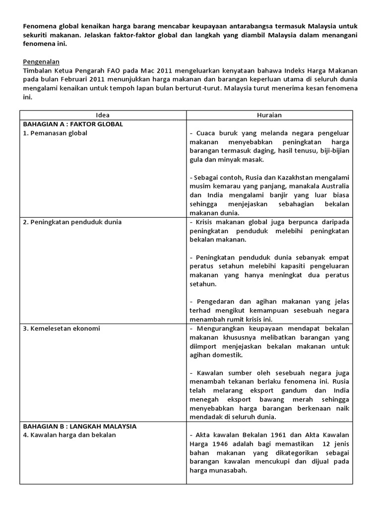 Fenomena Global Kenaikan Harga Barang Mencabar Keupayaan Antarabangsa Termasuk Malaysia Untuk Sekuriti Makanan